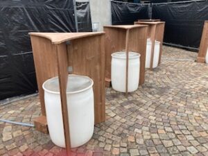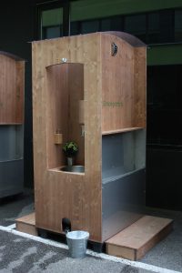 Die Handwaschbecken können zu den Einzeltoiletten oder zu den Pissoirs dazu gemietet werden.